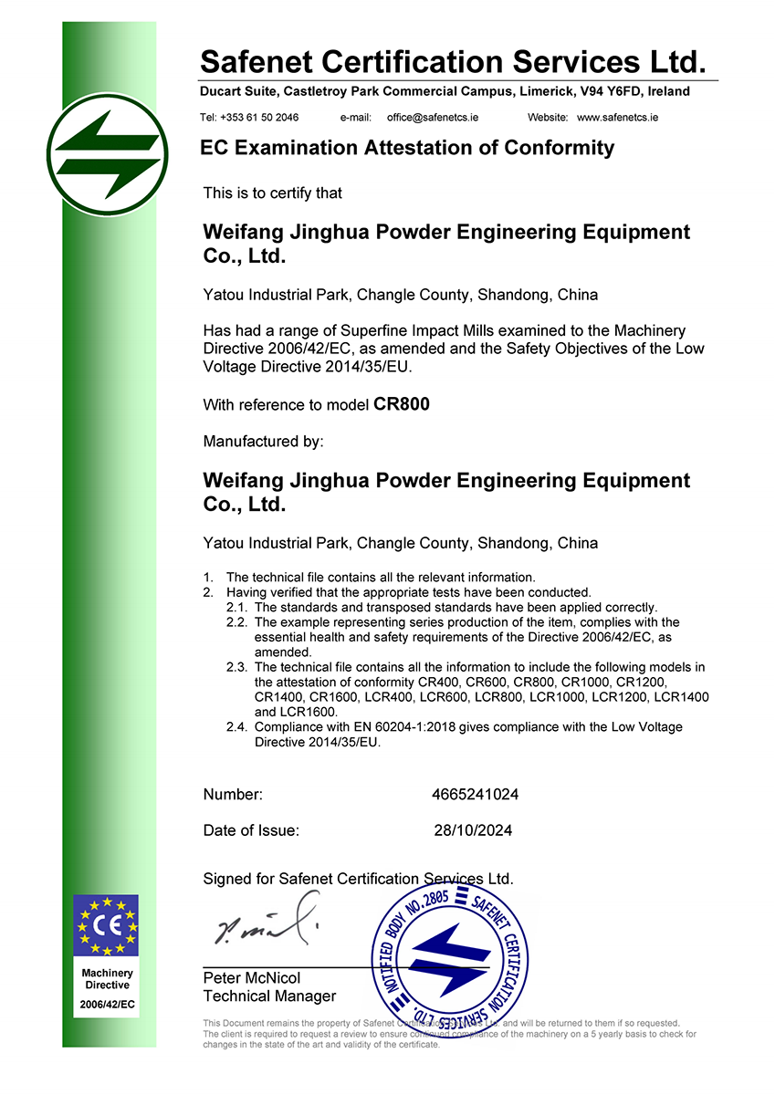 · 2018年6月氣流粉碎機(jī)通過歐盟CE認(rèn)證;