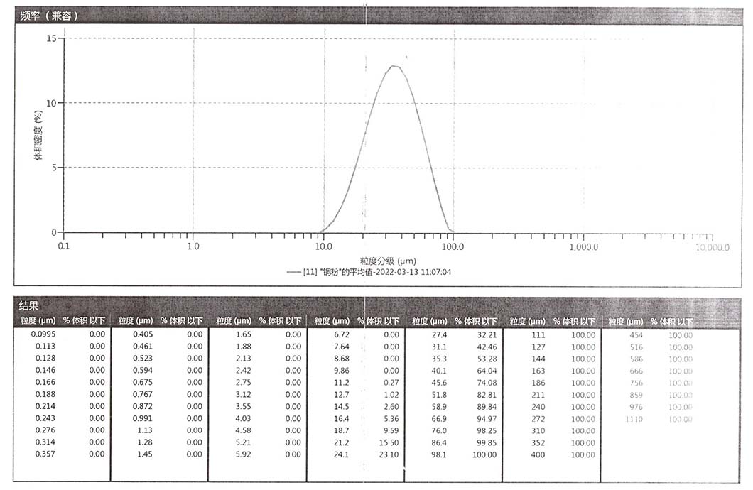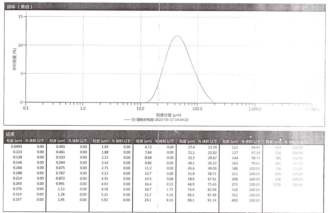 進(jìn)料細(xì)度:閃蒸烘干后電解銅粉